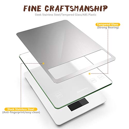 BACK KTCL ‘Cooking Master’ Digital Food Kitchen Scale, 22lb Weight Multifunction Scale Measures in Grams and Ounces for Cooking Baking, 1g/0.1oz Precise Graduation, Stainless Steel and Tempered Glass