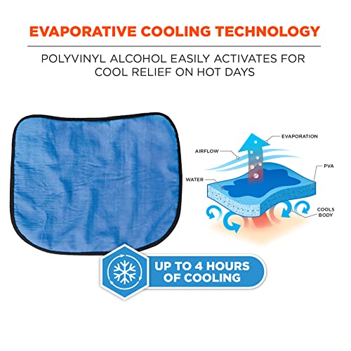The Chill-Its 6670CT Evaporative Cooling Hard Hat Neck Shade straps into hard hats to deliver four hours of cooling relief while also shading the neck from sun damage. The lightweight shade features advanced PVA cooling technology for instant cooling without bulk or slime, with a wide panel that extends down for complete back-of-neck-coverage. This hard hat neck shade fits most hard hats and safety helmets, easily and securely attaching to the suspension with two hook & loop straps. Heat-related illness continuously ranks among the top causes of worksite accidents and fatalities. Evaporative cooling technologies such as PVA (polyvinyl alcohol) are a simple, effective and comfortable solution for heat stress prevention. Similar to how sweat cools the body, evaporative technologies use an external water source to draw heat away—helping to regulate body temperature while providing cool relief.