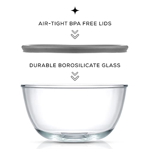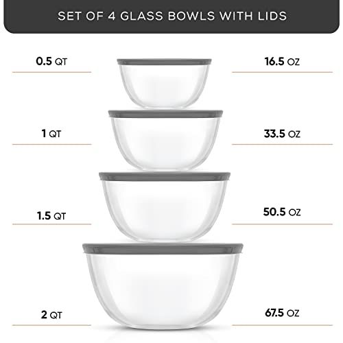- Durable Bowls That Nest With Ease: When it comes to glass mixing bowls you want them sturdy thick clear and space saving right? If so you’ll probably love these four thick strong mixing bowls with lids They neatly nest for easy compact storage and tough enough for life! Cook for Joy by JoyJolt.