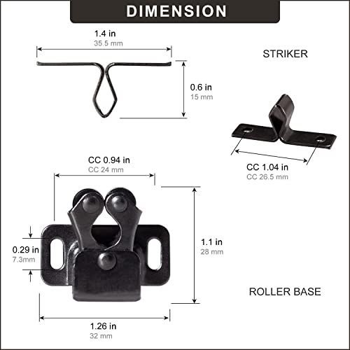 Keenkee 2 PCS Cabinet Latch Double Roller Catch Hardware for Cupboard Closet Cabinet Door Latches and Catches, Black Nickel