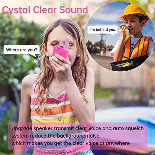 SUNET 2 Pack Battery Operated Walkie Talkies for Kids with 22 Channels 2 Way Radio 6 KMS Long Rang, Toy for 3-12 Year Old Boys Girls, with Backlit LCD Flashlight for Camping Outdoor (red-Pink)
