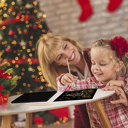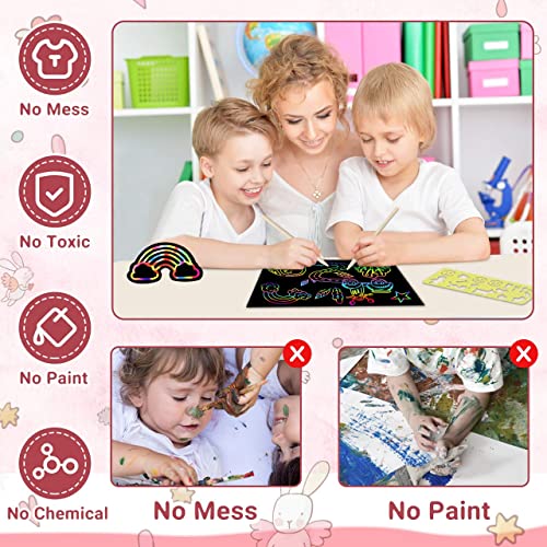 - 🌈🍒Safe and Durable Material: 🍓Rainbow scratch paper art are made of premium paper and are safe and tasteless, not easy to tear up, durable enough for long time use and safe to create colorful picture designs. Kids scratch paper is a wonderful activity that allows children to paint, play games, and practice letters with parents.